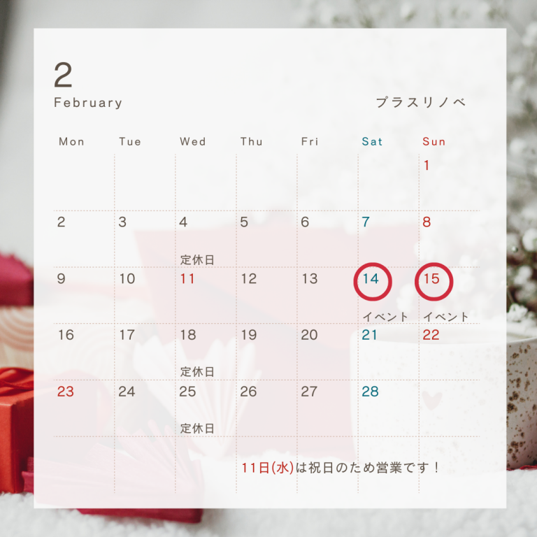 2月の営業日につきましては、上のカレンダーの通りとなります。